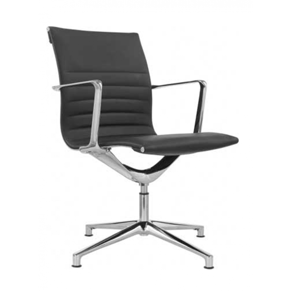 Különleges formatervezésű forgószék, mely kiváló minőségű valódi bőr kárpitozású ( kérhető fekete és fehér színben), alumínium és acél váz szerkezettel rendelkezik