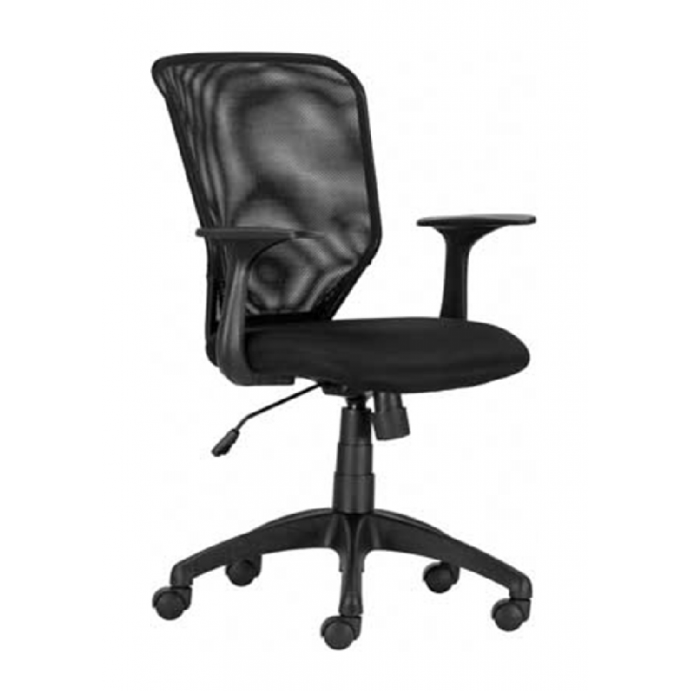 ▪ ívelt, műanyag háttámla ▪ fekete mesh ülőlap ▪ fix műanyag karfa ▪ állítható hintamechanika ▪ szögletes műanyag lábkereszt d