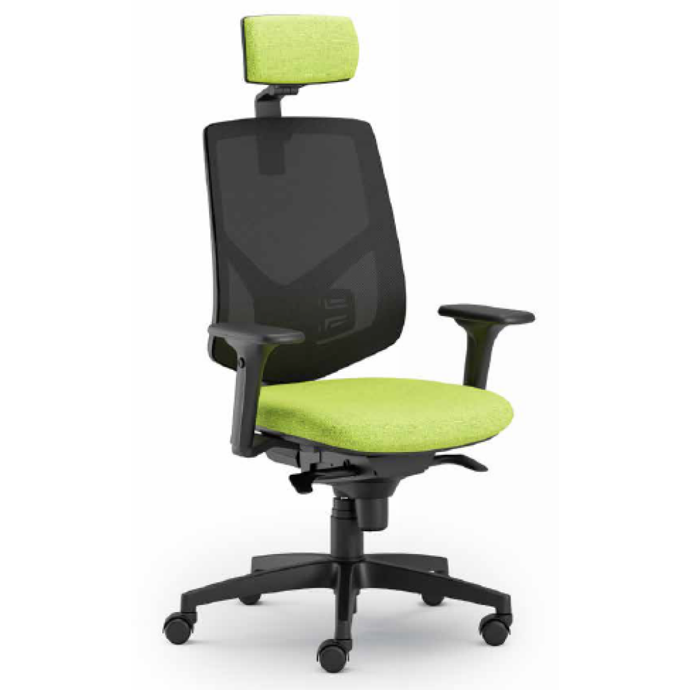 magas, ergonomikus, állítható magasságú háttámla – 1D karfa (BR HANS) – ergonomikus ülőlap – aszinkron mechanika – műanyag lábkereszt d