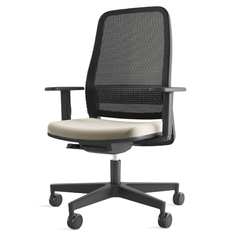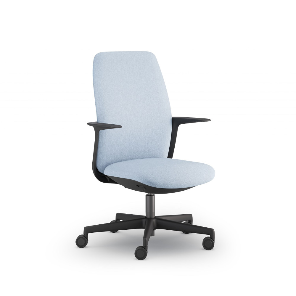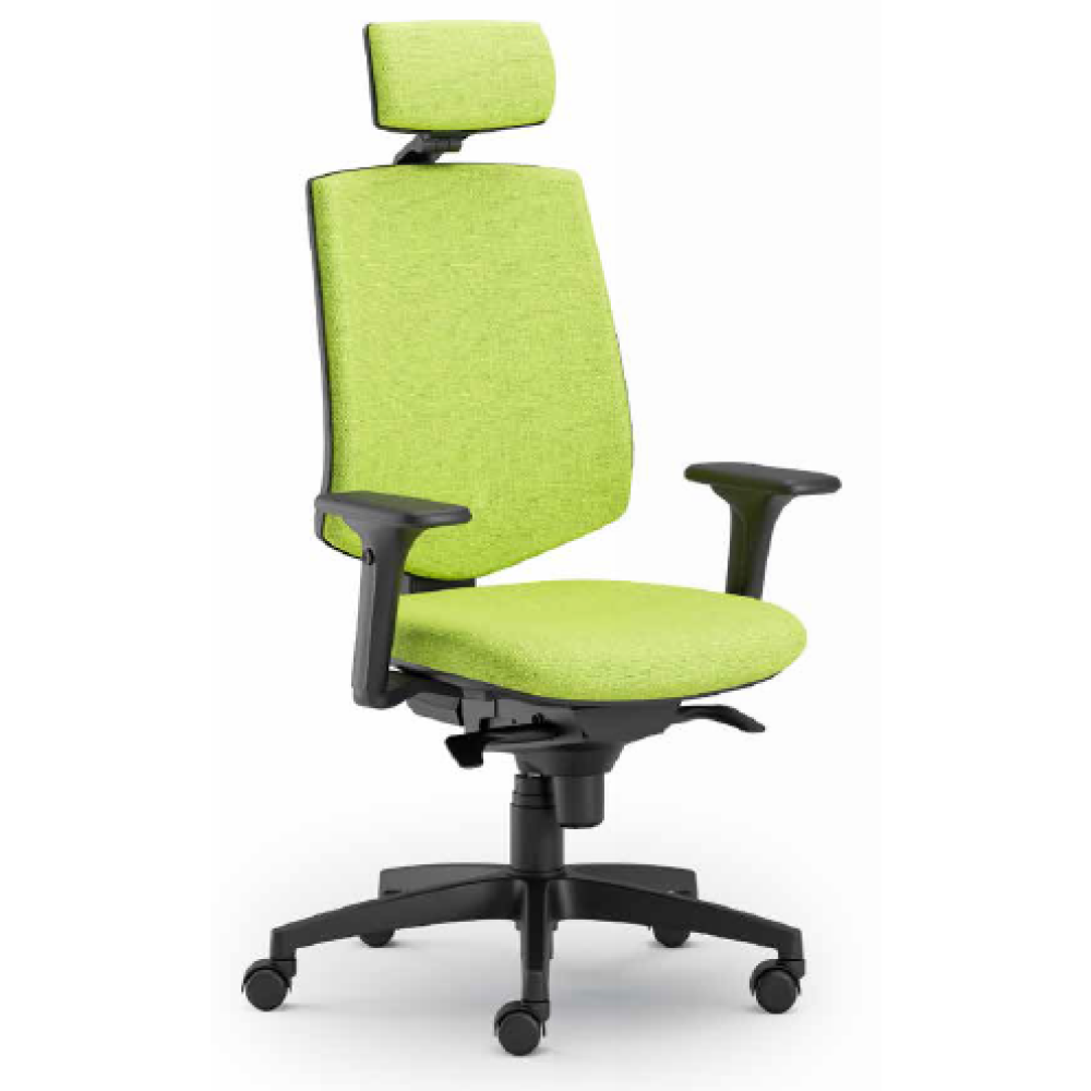 ▪ szögletes, telekárpitos háttámla és ülőlap ▪ fix háttámla ▪ 1D karfa (BR HANS) ▪ szinkronmechanika (antishock) ▪ d