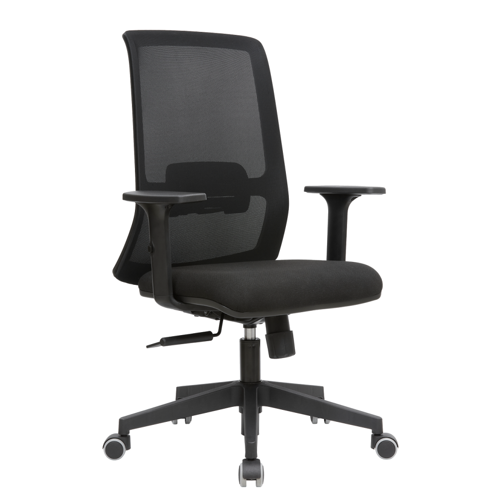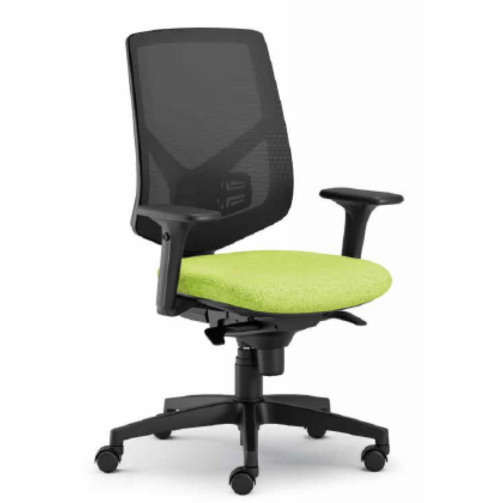 A forgószék feszített hálós, középmagas háttámlával, állítható deréktámasszal rendelkezik