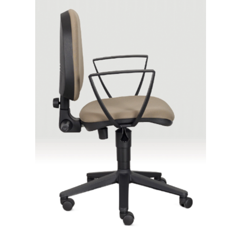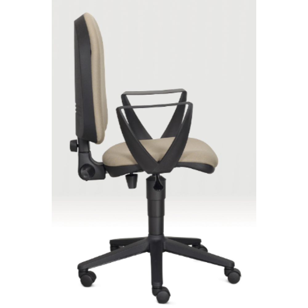 • munkaszék • poliuretán ülő és háttámla • gázliftes magasságállítás • ötágú normál lábcsillaggal, görgőkkel vagy tappancsokkal lábtartó karika és toldó felárral kérhető
