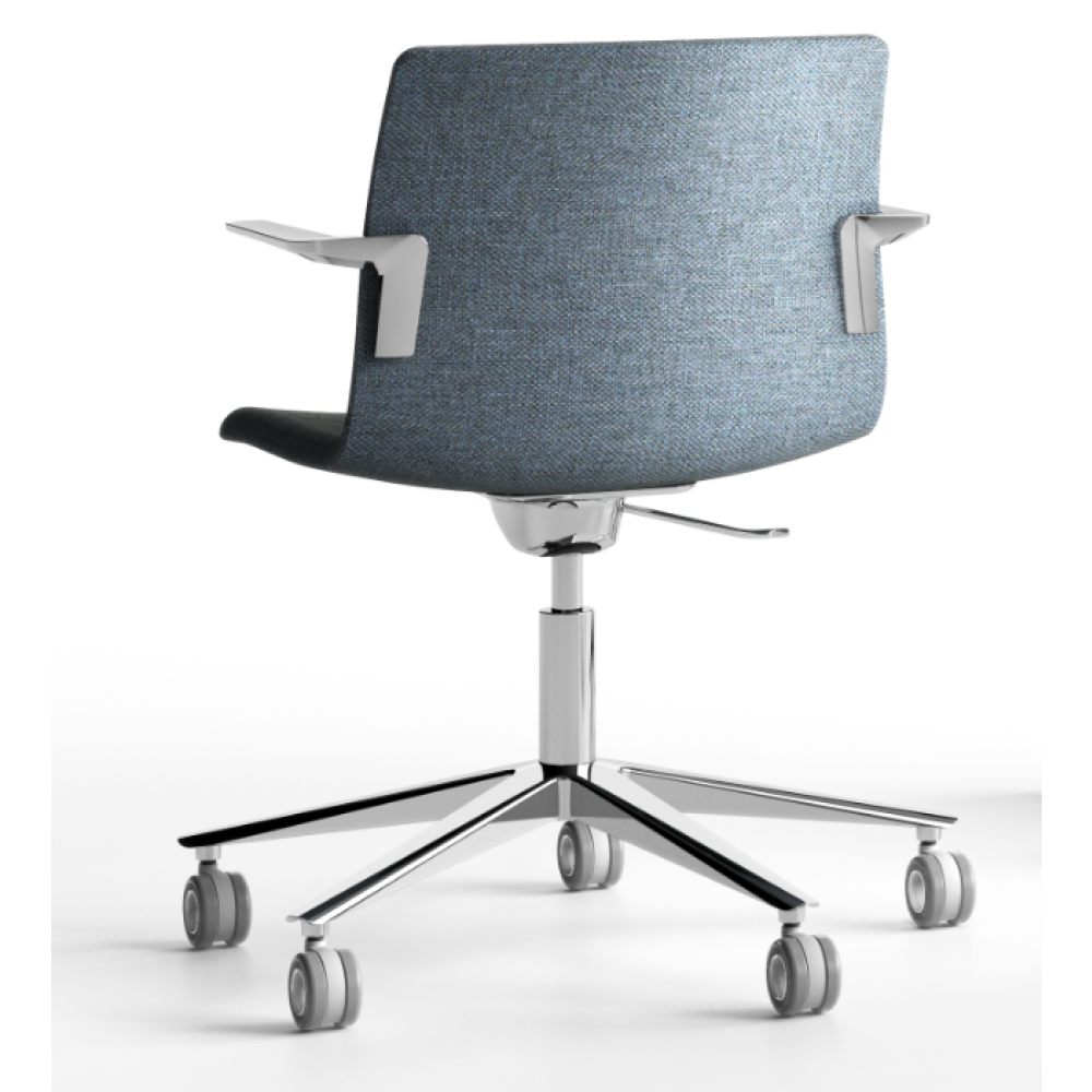 A forgószék középmagas, telekárpitos háttámlával szerelve