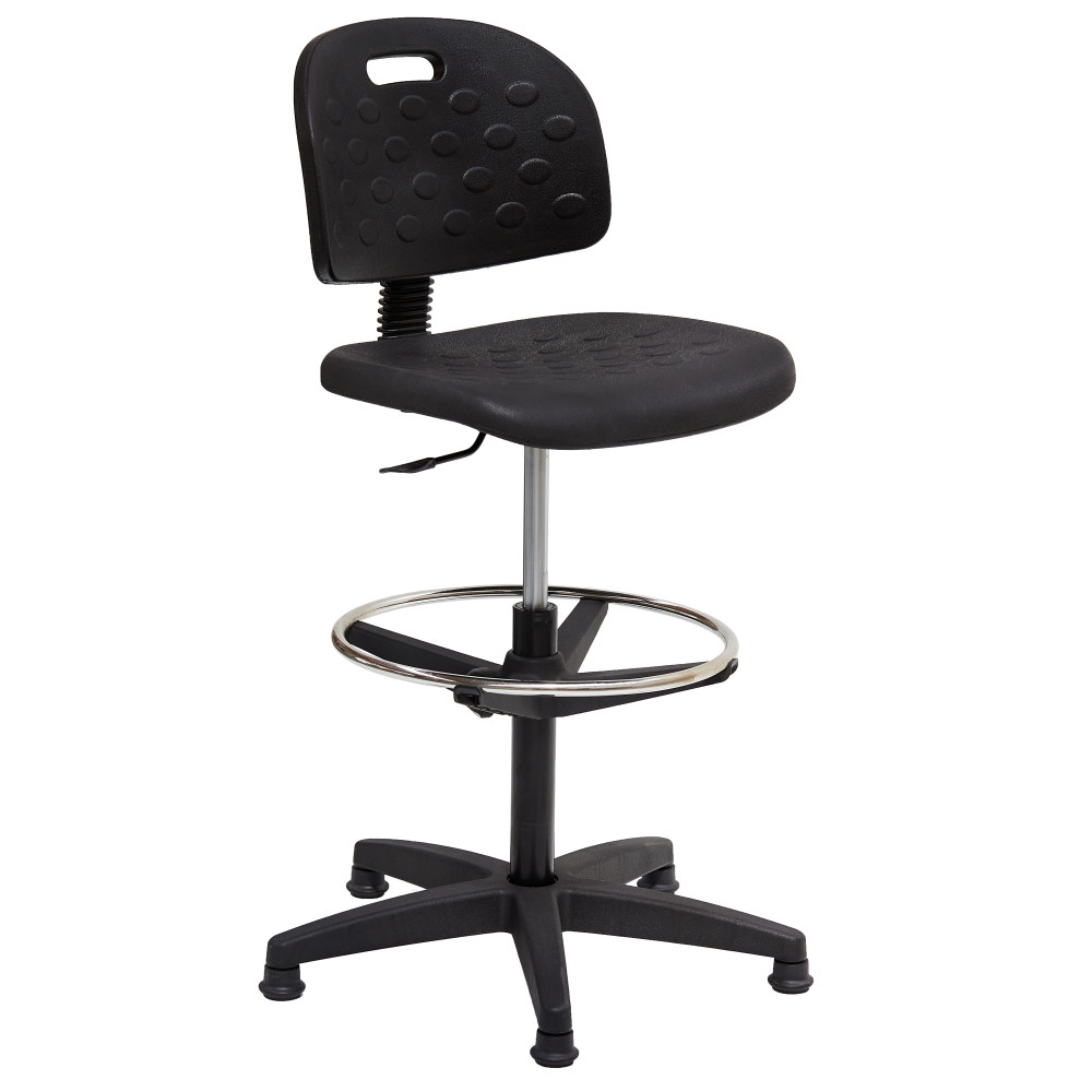 • munkaszék • poliuretán ülőlappal • gázliftes magasságállítás • ötágú normál lábcsillaggal, görgőkkel vagy tappancsokkal lábtartó karika és toldó felárral kérhető